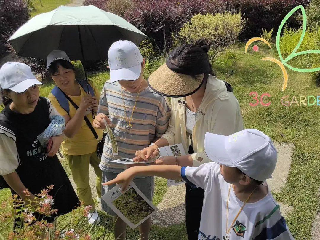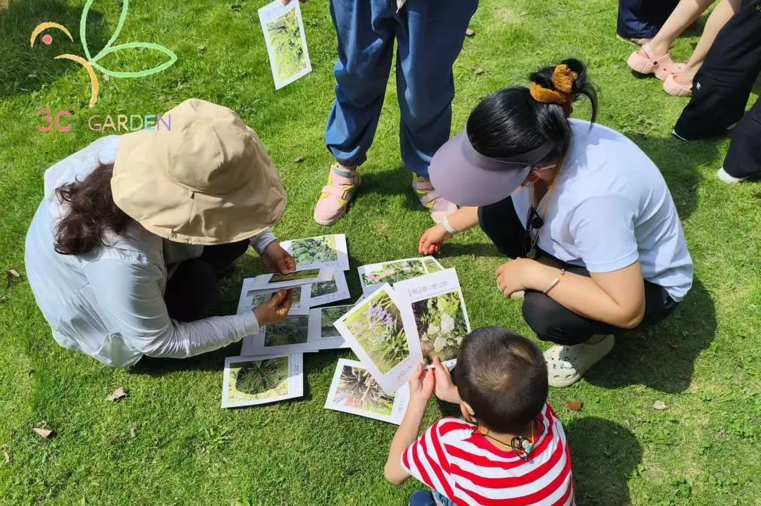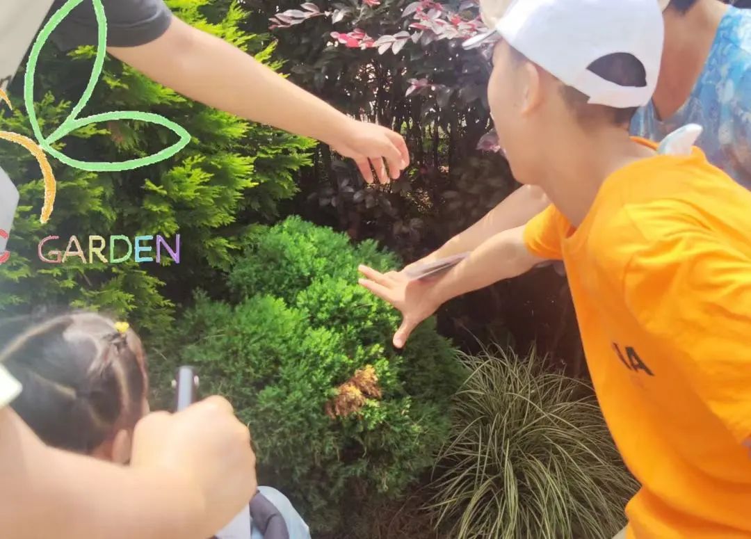 志愿者提前制作了花园中特色植物的图卡,供孩子们挑选自己喜欢的植物品种。随后,孩子们分为四组,在志愿者与“爱之泉”老师的带领下,开始花园探险。他们观察植物的形态、颜色,触摸叶片的质感,嗅闻不同的气味,用五感全方位感知植物的魅力。这场“自然寻宝之旅”不仅增强了孩子们的观察与认知能力,也拉近了孩子、家长与志愿者之间的情感距离。